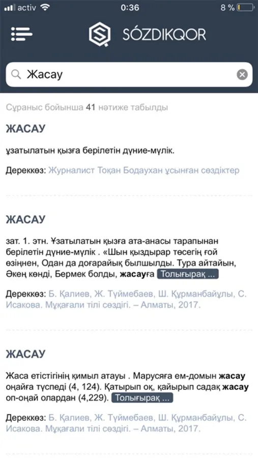 Бұл қосымшада қазақ тіліндегі сөздердің мағынасы, сипаттамасы берілген. Қорда 300 000-нан астам сөз бар.
