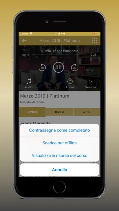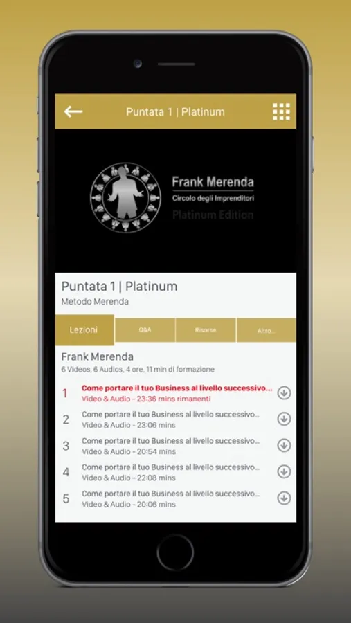 - accedere in qualunque momento, anche da rete 4G, alla tua area riservata e guardare i file multimediali del tuo arsenale di corsi. Circolo degli Imprenditori, Ghiaccio agli Eschimesi, Spremere i Limoni e qualunque altro corso tu abbia acquistato da noi nel tempo sarà a portata di tasca;