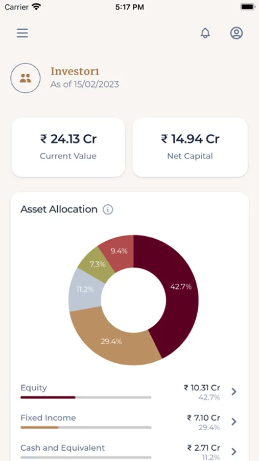 * Portfolio holdings access with drill down capability of portfolio, asset class, security, unrealised gains and lot wise positions with IRR on open positions