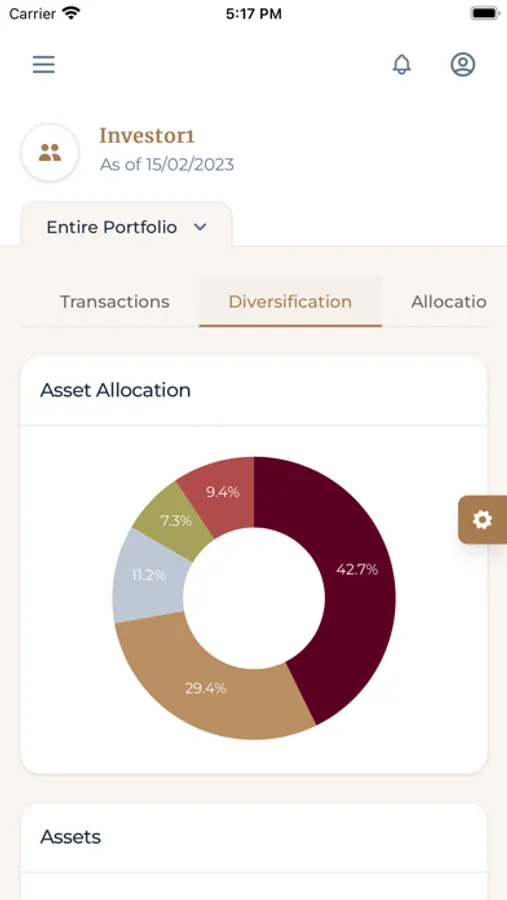 * Portfolio performance analysis across different time periods with time series of graphs, IRR at portfolio, asset class and security level