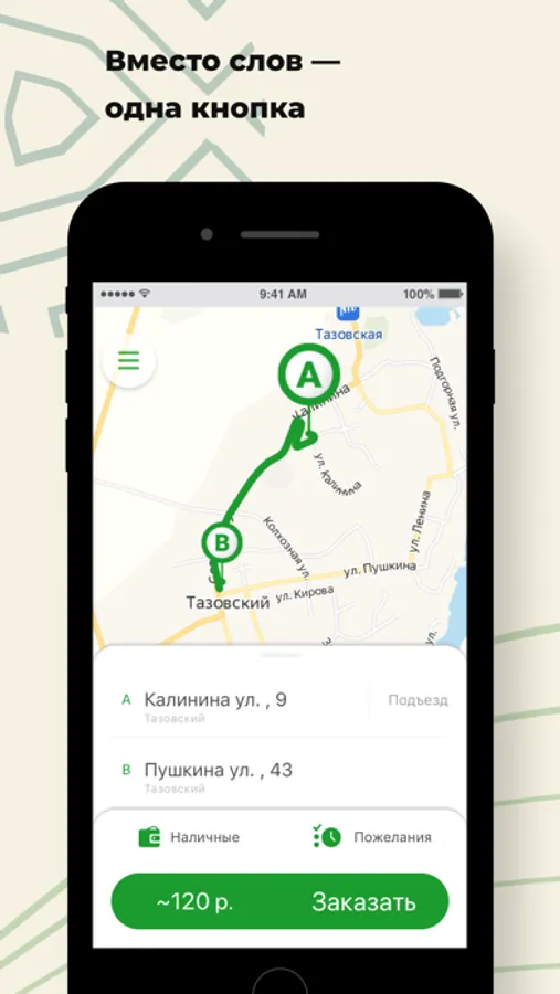 Откройте приложение, укажите адрес и закажите такси, нажав на одну кнопку.