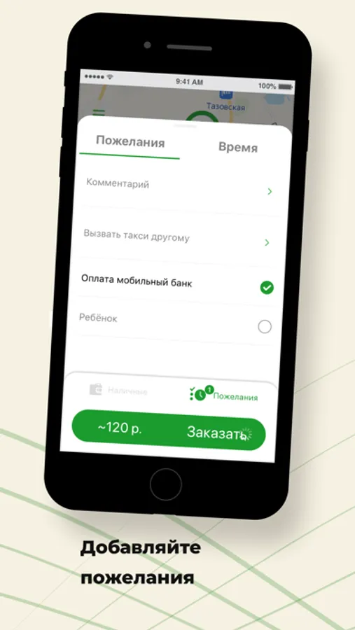Добавляйте к заказу пожелания, напишите комментарий водителю, ускоряйте поиск автомобиля.