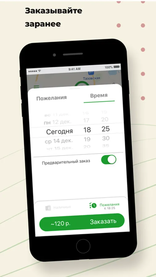 Нужен автомобиль к определенным времени и дате? Закажите его заранее через приложение, и в назначенное время такси будет ждать вас у подъезда.