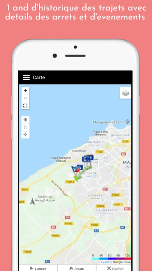 + Alertes en cas d'exces de vitesse, sortie de zone geographique et d'autres notifications utiles, pour garder un oeil sur votre flotte automobiles