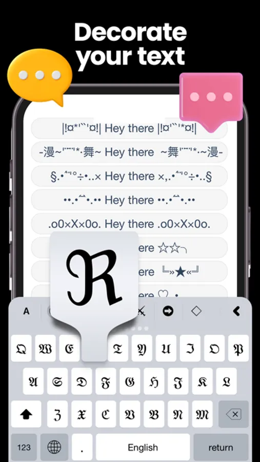 Symbol Keyboard supports multilingual typing, special characters, text decoration and adorable emojis - everything you would expect in a keyboard app. So, wait no more! Download it now and have fun creating unique keyboard designs!