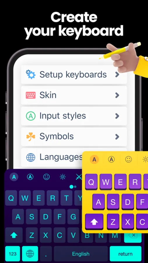 Design your own keyboard! It's simple and easy! You can change the background theme, change your default and simple font and make it look more attractive and stylish. Change the shape, color and the style of the keys and turn on some special characters. Customize the keyboard the way it suits your taste and style!