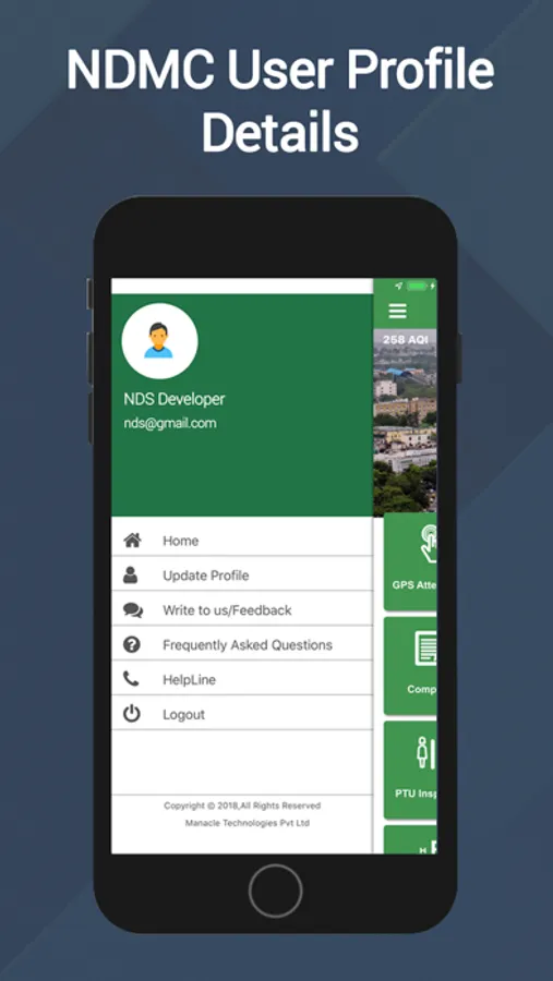 NDMC Officer Application enables users to mark their daily attendance and respond to complaints and feedback on a daily basis.