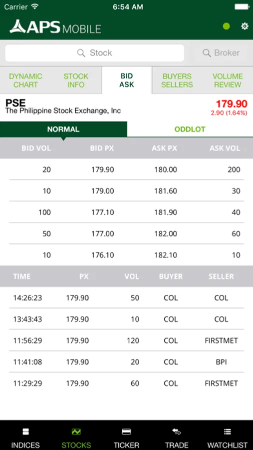 • Normal and Oddlot Bid and Ask for Stock Quotes
