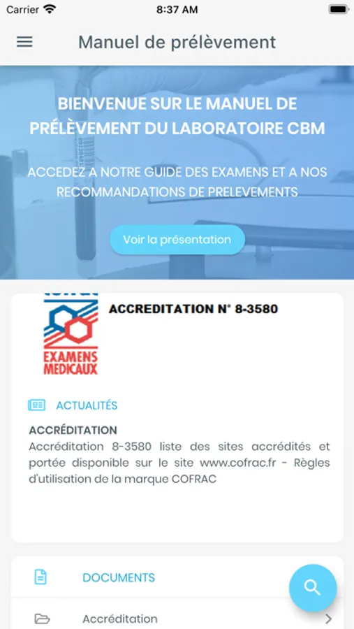 INOVIE CBM est une application médicale ayant pour objectif la mise à disposition d'un manuel de prélèvement à l'usage des professionnels de santé (Infirmiers, Biologistes, Médecins).