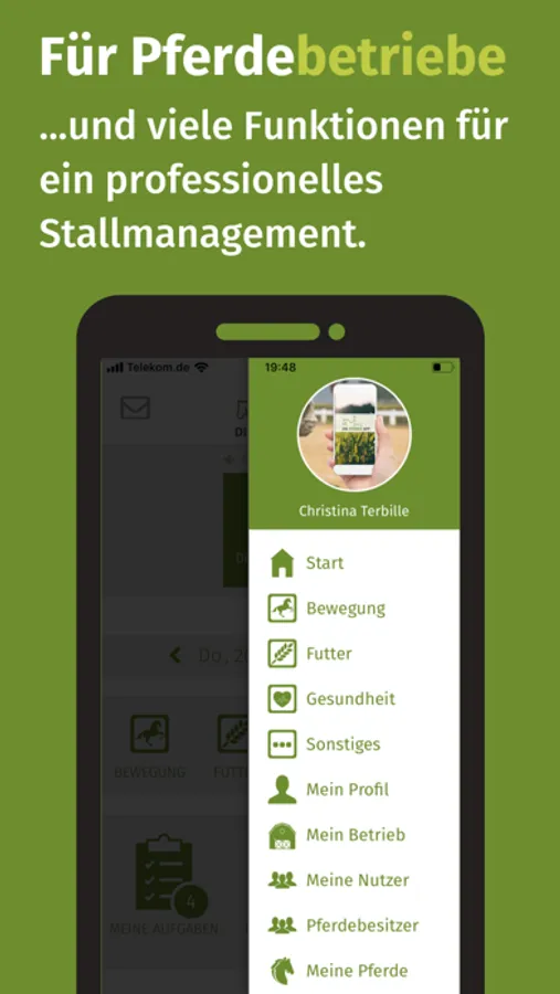 Die App steht in drei verschiedenen Versionen zur Verfügung: für Pferdebesitzer, für Stallbetreiber und für Nutzer ohne Pferd / Gäste.
