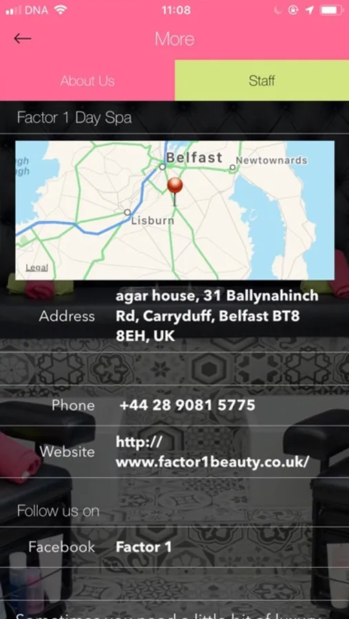 Welcome to the Factor 1 Day Spa App! Use our app to make bookings, get your loyalty points and see all the special offers that aren't available anywhere else!