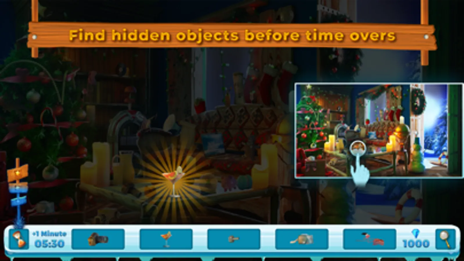 This addictive game provides hours of fun while you have to search for a various hidden things like treasures, artifacts, fruits and vegetables, big toys, bear, coffee cups, cute little animals like lizard and cats, teddy,toffee,candy,santa,sweet candy bear etc. Search and find secret hidden objects in a picture of santa claus house and explore mysterious worlds beyond your imagination with stunning mystery levels and challenging puzzles. Enter a new fantasy hidden object world and enjoy one of the best mystery games on the store. Play top rated hidden object games anytime offline! The mixture of the hidden object games and cleaning up games inside this cozy christams house! It improves your problem solving, visual and concentration skills!