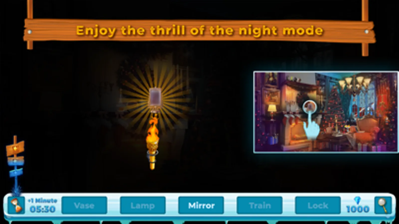 You can also choose from several difficulty levels (Shadow Mode, Night Mode, Picture search, Word Mode and much more!) and use hints that will show you the location of an item from the scene. However, these hints are limited so use them carefully or come to the store to unlock them all or by using pearl.