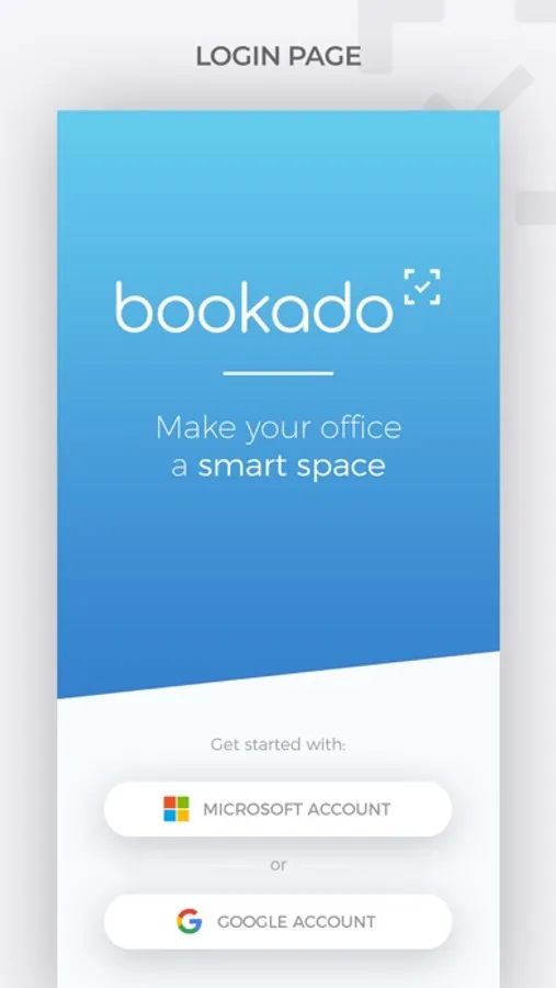 Employees install Bookado on their mobile devices and securely authenticate themselves using Microsoft or Google enterprise account credentials.