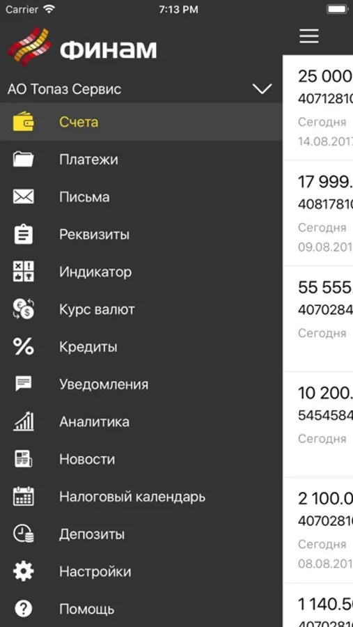 — просмотр реквизитов и их отправка с помощью различных каналов и приложений, доступных на мобильном устройстве;