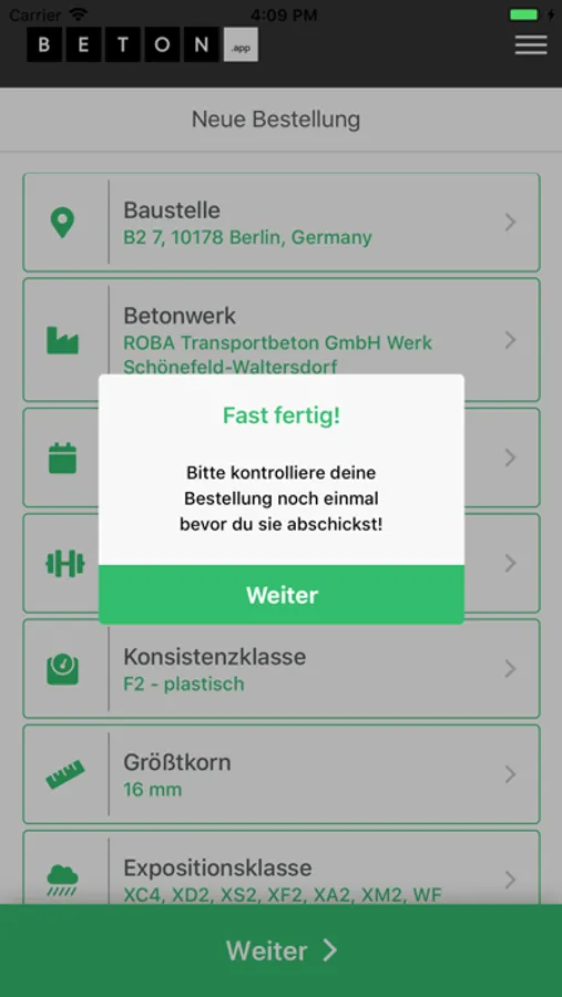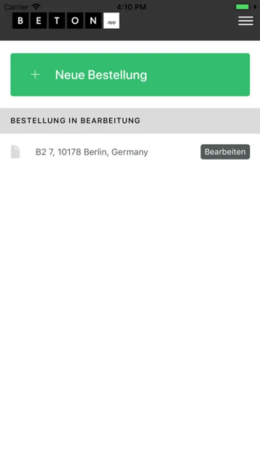 BETON.app ist eine App, die es dir ermöglicht, Beton schnell und jederzeit zu bestellen. Du wirst von unserer innovativen App durch den Bestellvorgang geleitet und bei deiner Bestellung durch Hilfreiche Informationen unterstützt. BETON.app hilft dir den richtigen Beton für deine Baustelle zu finden und zeigt dir die dichtesten Betonwerke. Außerdem musst du nie mehr in der Telefonschleife der Disposition warten.