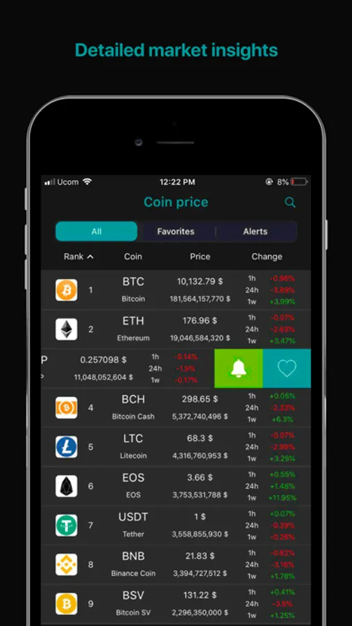 Allow to track cryptocurrency current market data/stat, and add alert for coin change