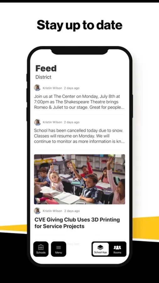In the Live Feed is where you’ll find updates from the administration about what’s going on in the district right now. Whether that’s celebrating a student’s success, or reminding you about an upcoming deadline.