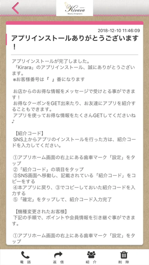キララのアプリをSNSを通じてお友達に紹介する事ができます。