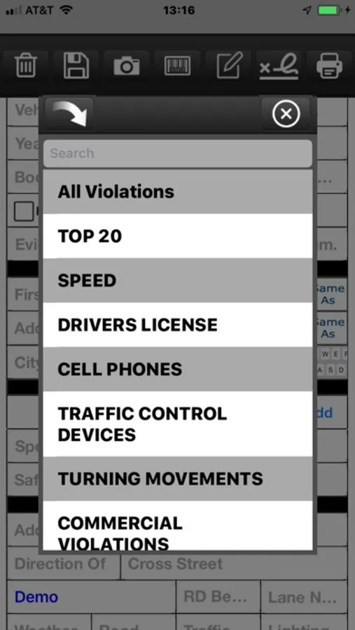 Officer Notes: Pre-formatted notes are set up with checkboxes and lists for common note items like location, lanes, conditions, violator behavior. Etc. Sections for violator statements and officer freeform notes with speech-to-text provide everything needed to document the event for use in court.