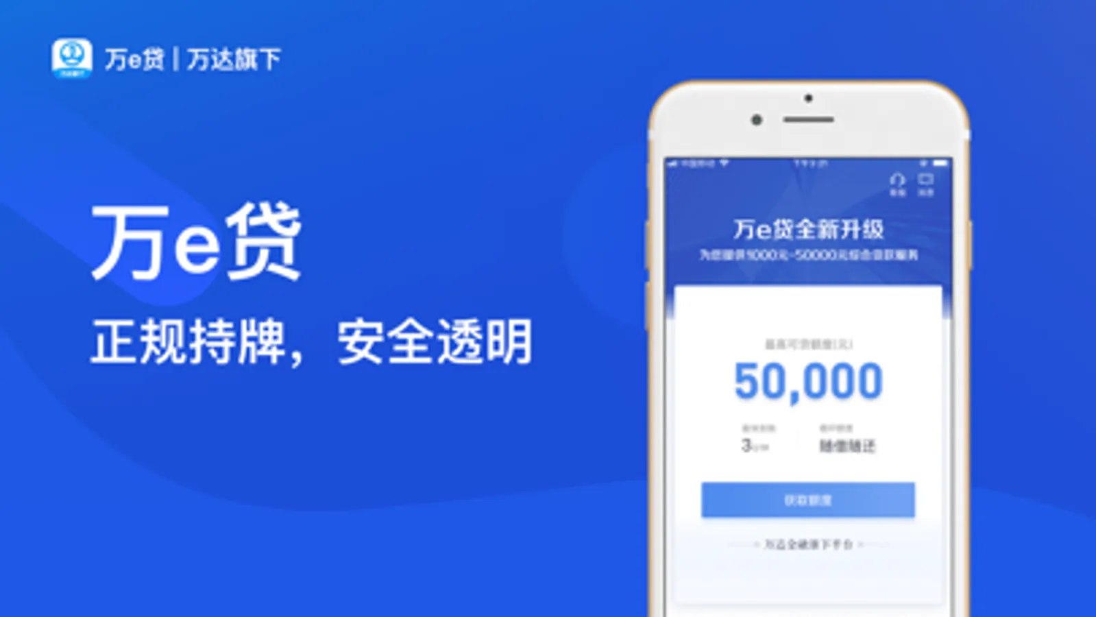 万e贷是万达金融集团旗下全资子公司,为您提供一款纯线上的信用借款服务软件。购物,求学,结婚,装修,买车,旅行…梦想不必苦苦等待!