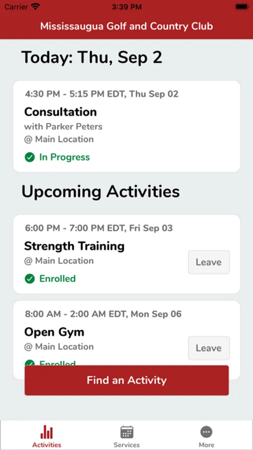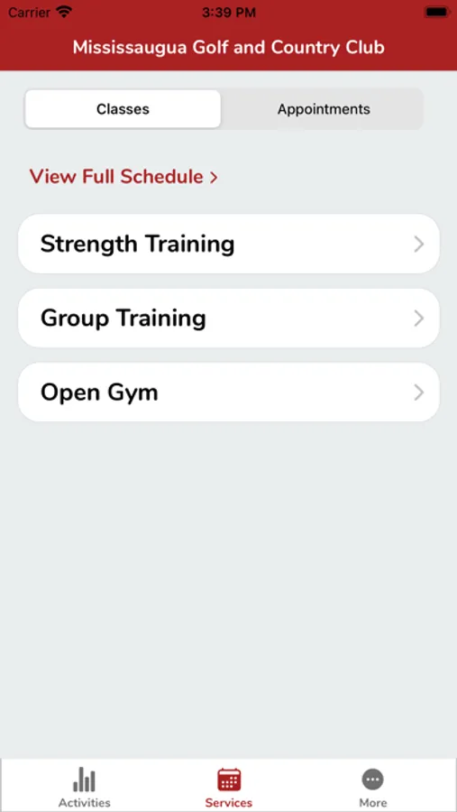 Download the Mississaugua Golf and Country Club Members Fitness App to have easy access to: