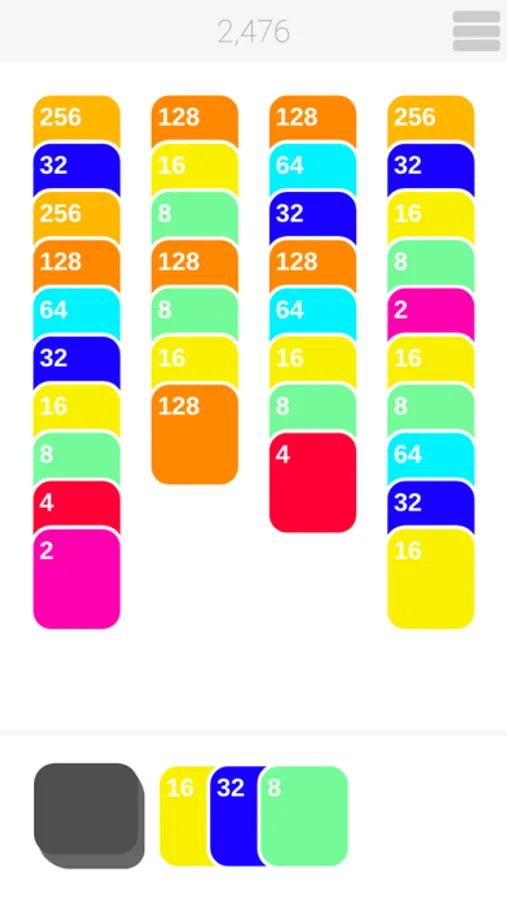 Stack up cards to make combinations to get points. Two identical cards combine to make a larger number. Star cards combine with anything. 2048 clears the row. When you run out of placements - the game is over. Try to get the highest score possible.