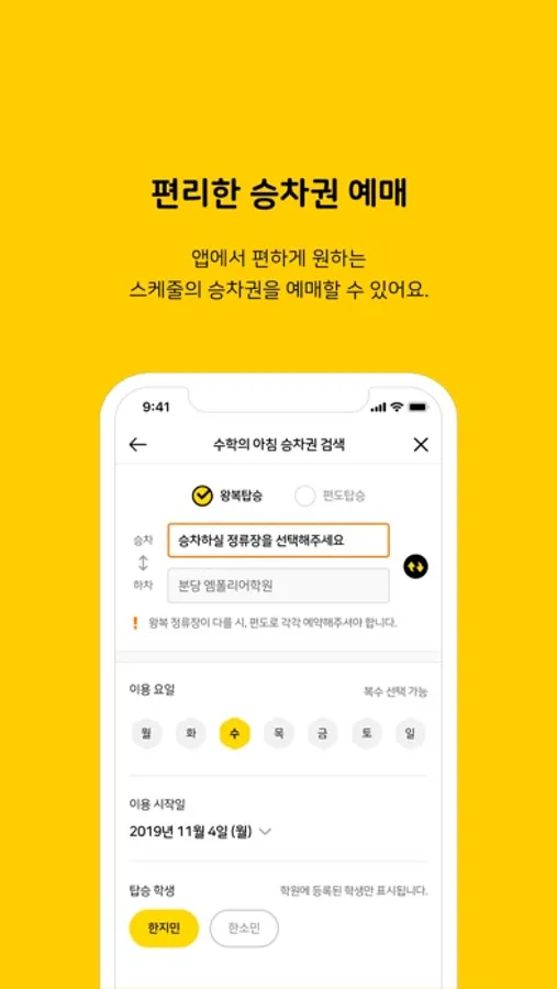 옐로우버스가 제공하는 승하차 알림 및 승차권 관리 앱!