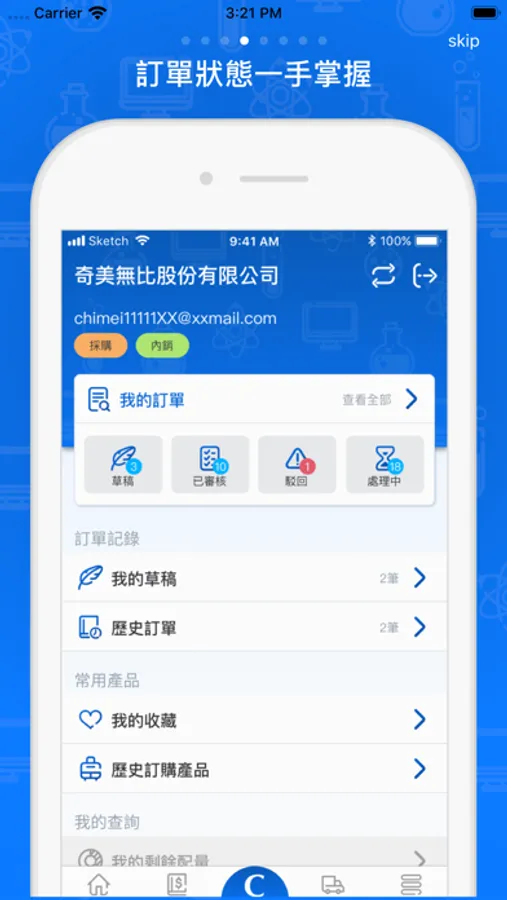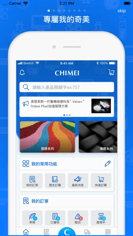 奇美實業為全球主要的塑膠、橡膠、光電產業關鍵材料供應商,產品項目眾多,並廣泛應用於生活中各式用品的加工製造。透過奇美實業APP,便一手掌握最新、最完整的各項材料相關資訊,奇美不僅能提供夥伴高品質的材料,同時也能成為最強力的數位支援!