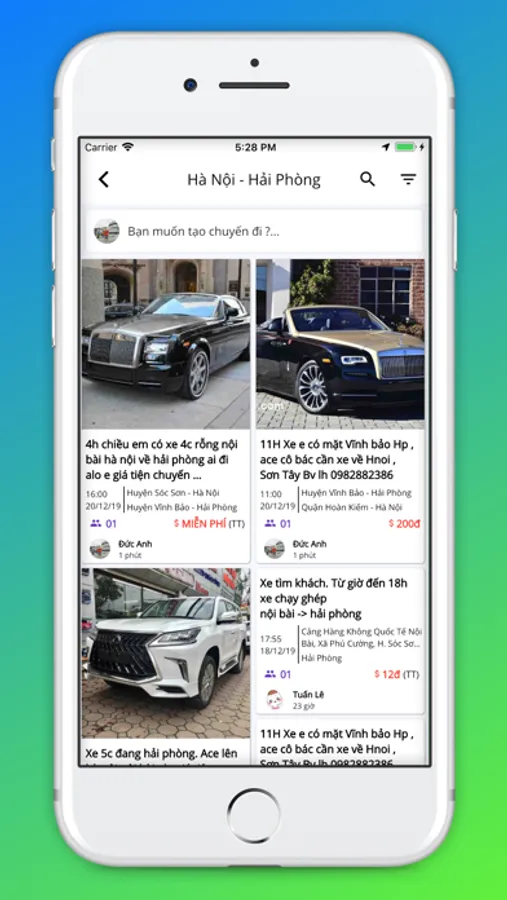 ***** Tạo chuyến đi chung khi bạn cần tìm người đi chung hoặc cần tìm xe đi chung;
