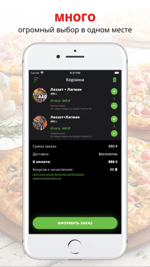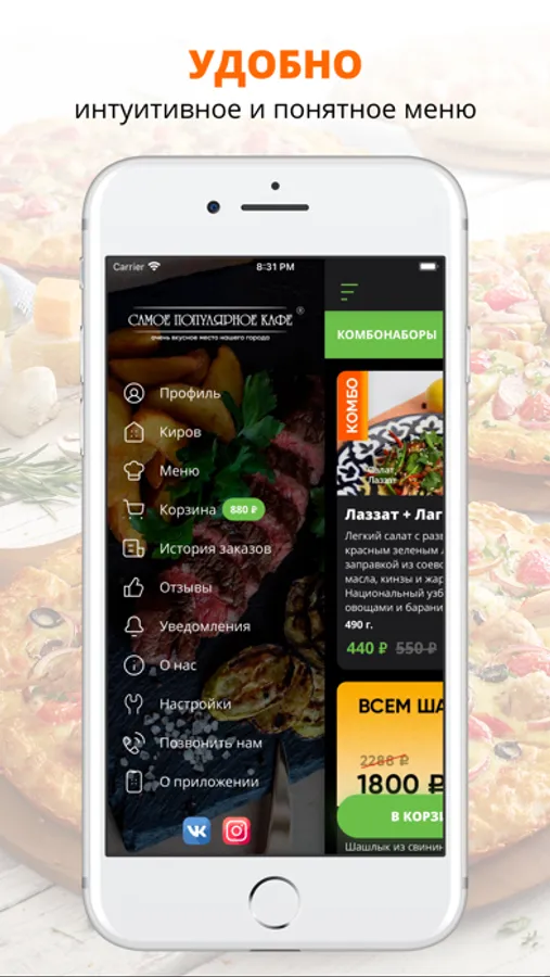 Установите наше приложение, чтобы посмотреть меню и оформить заказ на доставку или самовывоз еды из Самого Популярного Кафе!