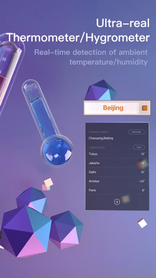 -An ambient temperature thermometer for cities worldwide: this live 3D thermometer app is not only a weather detector for your own location, but also a global weather tracker that you can search world weather and temperature. You can check weather globally like Los Angeles, New York, Chicago, Las Vegas, Hawaii, Sydney, Perth, Amsterdam, Tokyo, Ottawa, Toronto, etc.