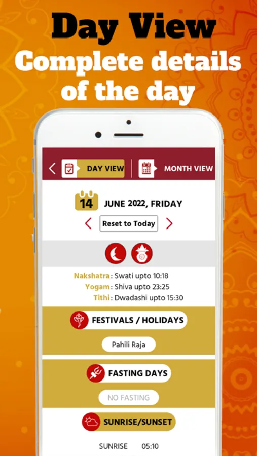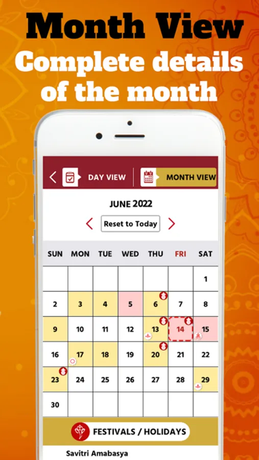 - Tabs: Calendar, Holidays, Shub Muhurt