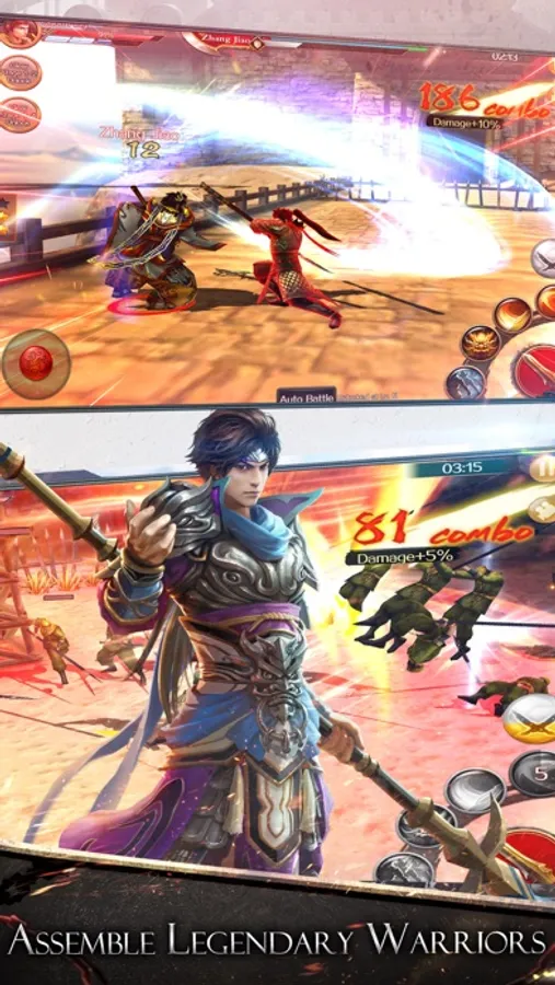 Designed for mobile phones. Smooth control, realistic hit reactions, stunning visual effects and high quality 3D graphics. It will take you back to the real ancient battlefield.