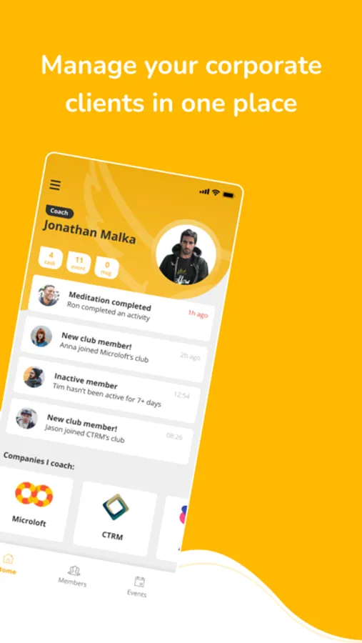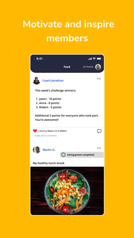 - Connect with your client's employees through the feed. Help your club members improve their wellbeing and make new habits stick.
