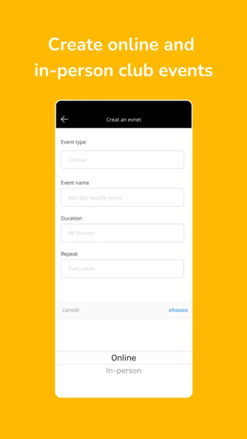 - Create online and in-person events and post them to the member's app.