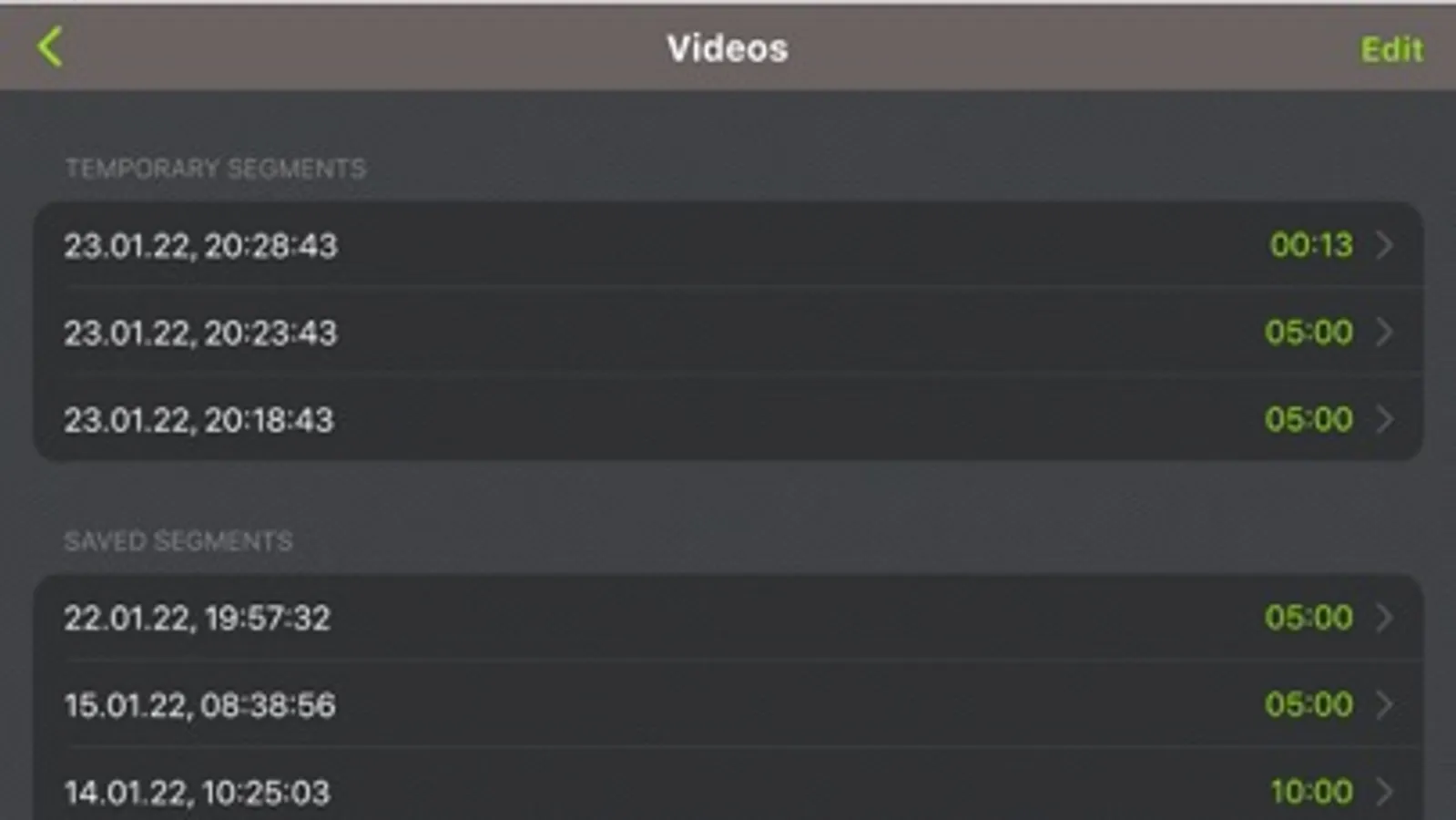 Continuous loop recording. Older videos are overridden by newer ones to preserve space on the device
