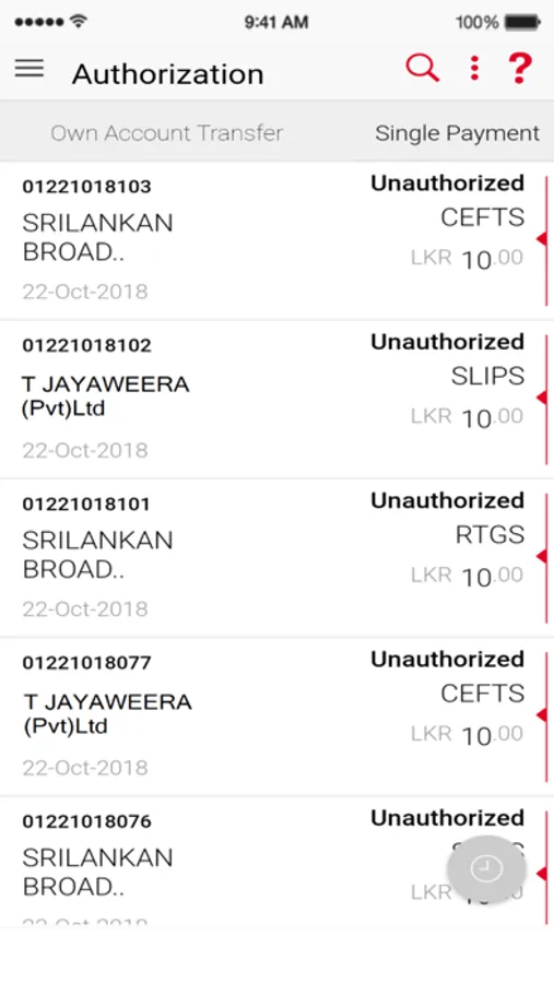 • Authorise DFCC internal transfers, Corporate Cheques, CEFT payments, SLIPS payments, RTGS payments,
