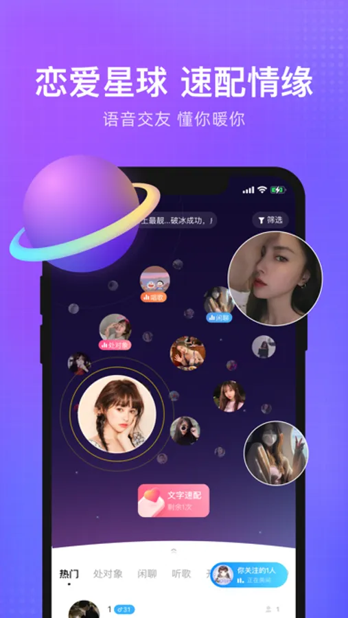 1、星球速配:交友星球,邂逅你喜欢的TA。