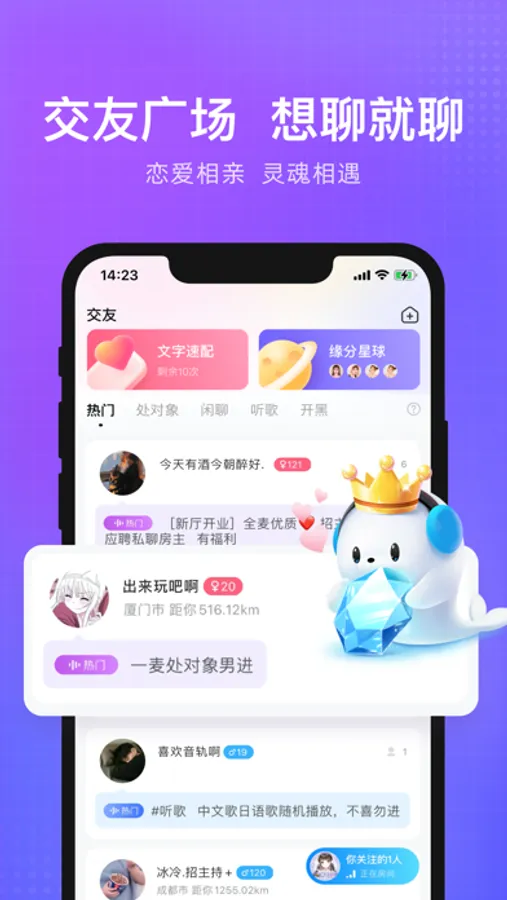 在这里可以快速找对象,还可以一起唠嗑、开黑、唱歌、看电影,快来声音交友吧!
