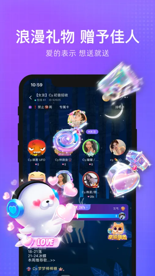 3、语音房间:虚拟恋人、交友、陪玩、点唱、电台,超多玩法等你来玩。