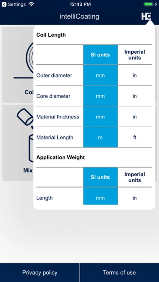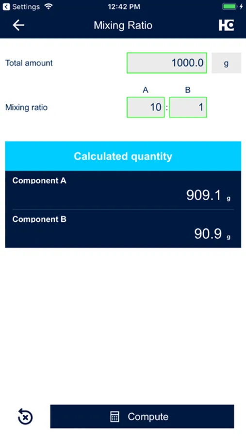 • The user only has to enter the required quantity of ready mixed coating material and the mixing ratio. The app will calculate exactly how much of each component to use.