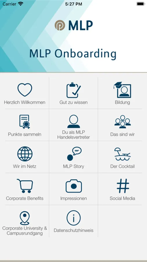 Die App bietet zu großen Veranstaltungen oder Schulungen an der Cooperate University alle wichtigen Informationen - von der Agenda, über Referenten bis hin zu Inhalten. MLPler können sich während dieser Events auch über die App austauschen. Zudem begleitet sie neue MLP Berater in ihren ersten Monaten im Unternehmen.
