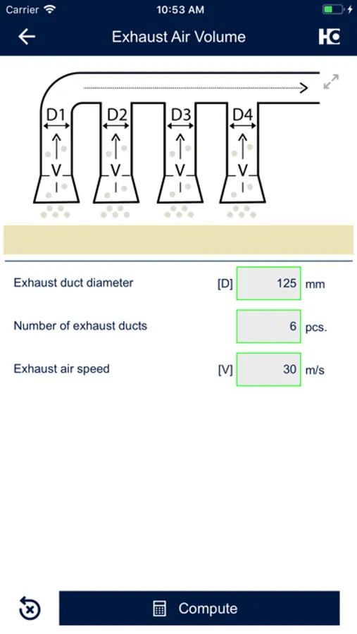 - The app calculates the required volume of an extraction system from the number of extraction sockets, their diameter and the extraction speed.