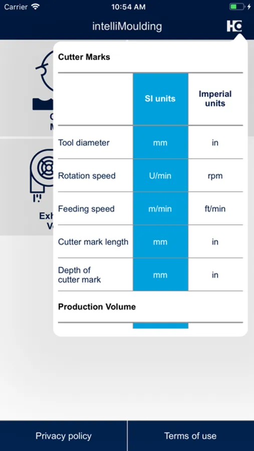 - With the intelliMoulding App, the cutter mark width can be determined from the specified machine parameters. At the same time, however, it is also possible to specify a desired cutter mark width and calculate the machine parameters required to achieve this quality level.