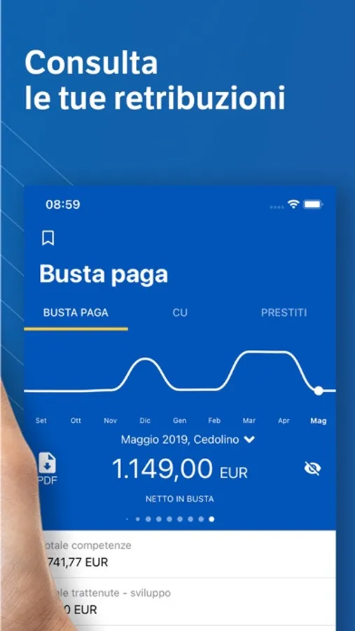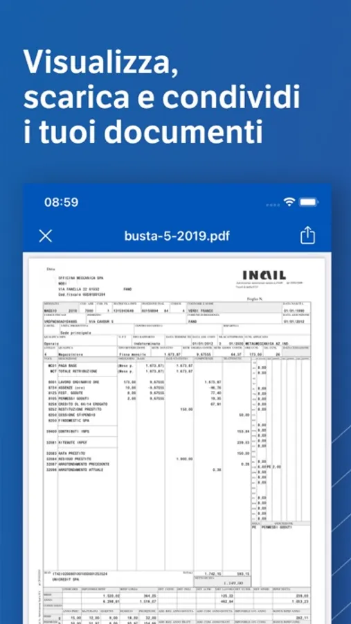 - visualizzare l’andamento delle retribuzioni percepite e scaricare o condividere in formato PDF leggibile i cedolini paga