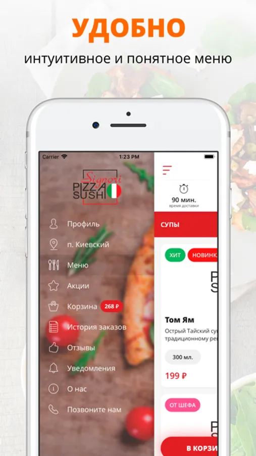 - Отслеживайте статус и время заказа!