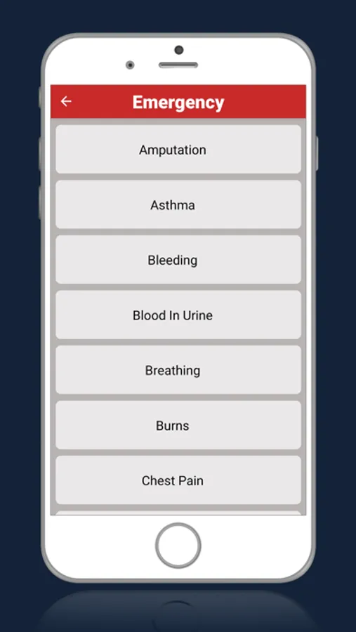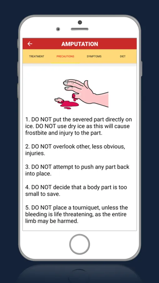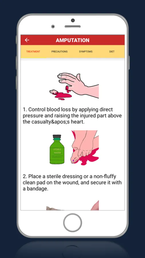 - Step by Step procedure for Dealing Amputation, Asthma, Bleeding, Blood in Urine, Breathing, Burns, ChestPain, Chocking, cuts, Diarrhoea, DogBites, Epilepsy, Fainting, Fever, Food Poisoning, Fracture, Head injury, Heart attack, muscle strain, No breathing, nose bleed, poisoning, rectal bleeding, snake bites, stings, stroke, sunburn.