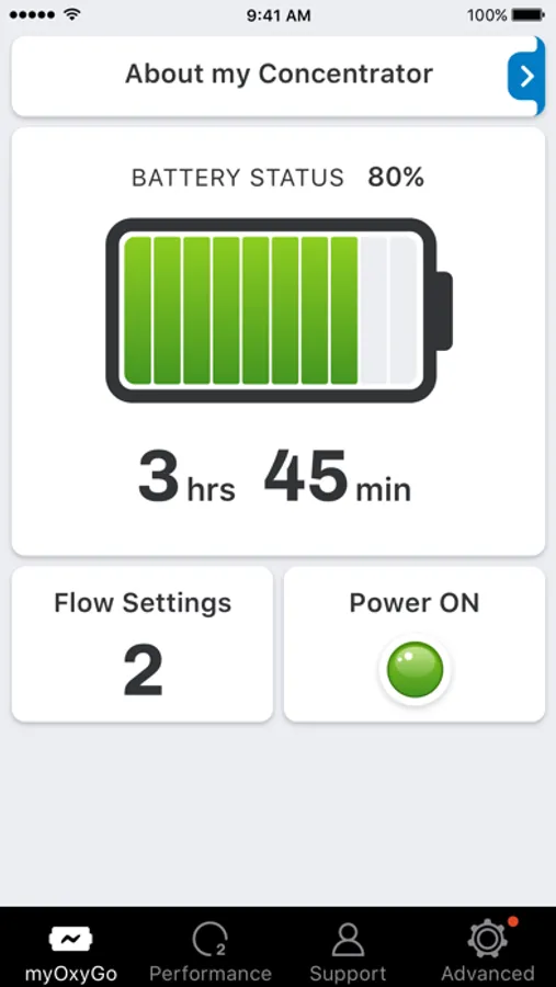 Your OxyGo connects directly to your mobile device delivering real-time stats, such as battery life and current settings. All the information you need to stay mobile and active is now in the palm of your hand. With the My OxyGo app you also receive important updates and travel tips for your OxyGo. App users will have direct access to helpful videos and information 24/7. OxyGo Keeps You Going!