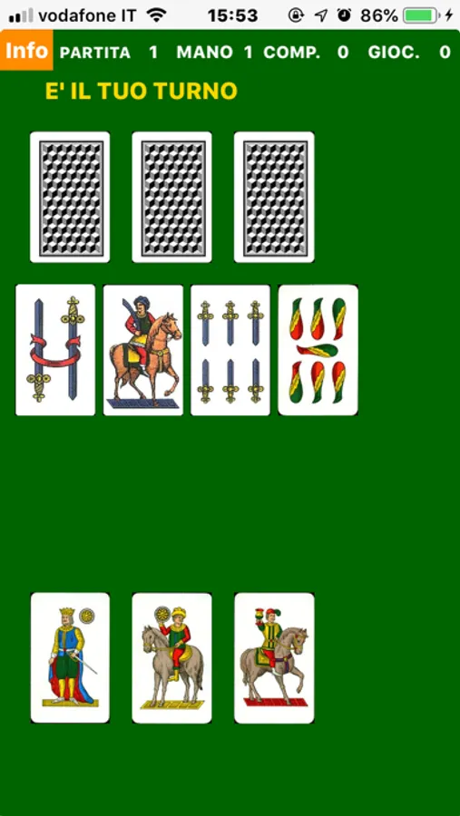 Initially developed in 1984 as DOS game (no graphics implemented at the time) the game was resumed as app in 2019. It is the classic scopa game very popular in Italy. This a very simple game: no animation, no video, no interactivity with other players but the calculation algorithm is the same of '84.